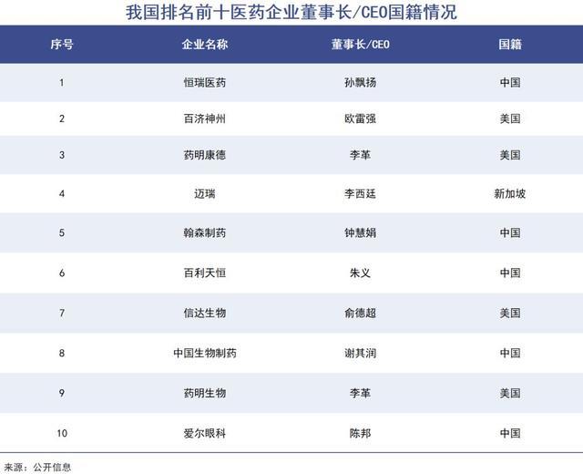 近期有媒体统计中国药企老板的国籍数据,并揭示了一个引人关注的事实:中国排名前十的药企中,已有五家企业的老板在国籍上完成了“去中国化”。